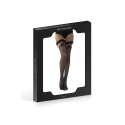 Bas en résille à fixer sur votre porte-jarretelles grâce à leur jarretière fantaisie lacée derrière la cuisse.