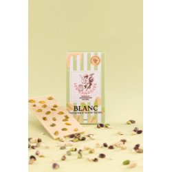 Chocolat blanc pistache - Tablette 100g - Les canailles : douceur, sensualité et raffinement pour une expérience unique.
